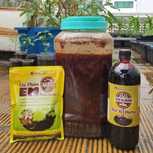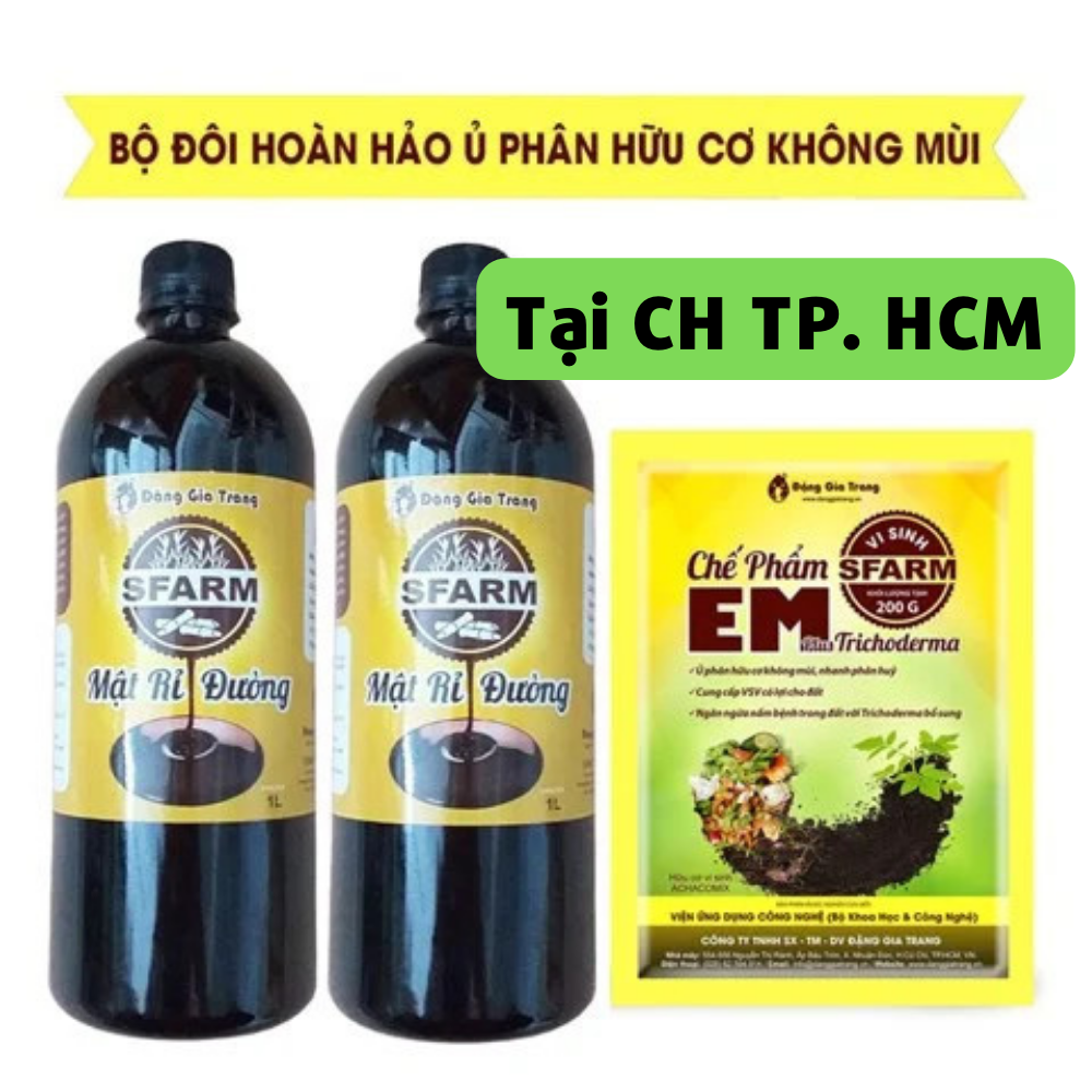 Combo 1 túi chế phẩm EM Sfarm 200gr và 2 chai mật rỉ đường Sfarm 1 lít – Tại CH TP. HCM