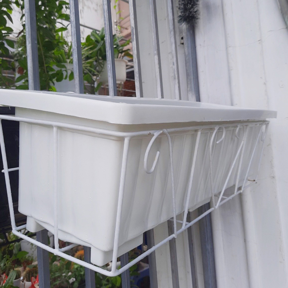 Chậu trồng lan can + Giá đỡ màu trắng