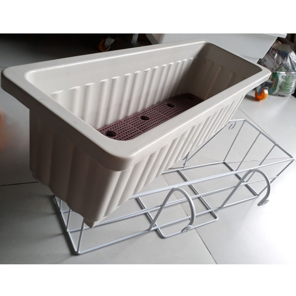 • Khay + khung treo lan can thích hợp để trồng rau sạch ăn là và hoa kiểng đô thị, thích hợp với diện tích không gian hẹp ở thành phố.